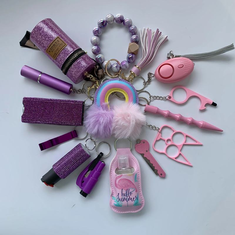 19 Pieces Of Sequin Dinner Bag Self-defense Keychain Set-Black